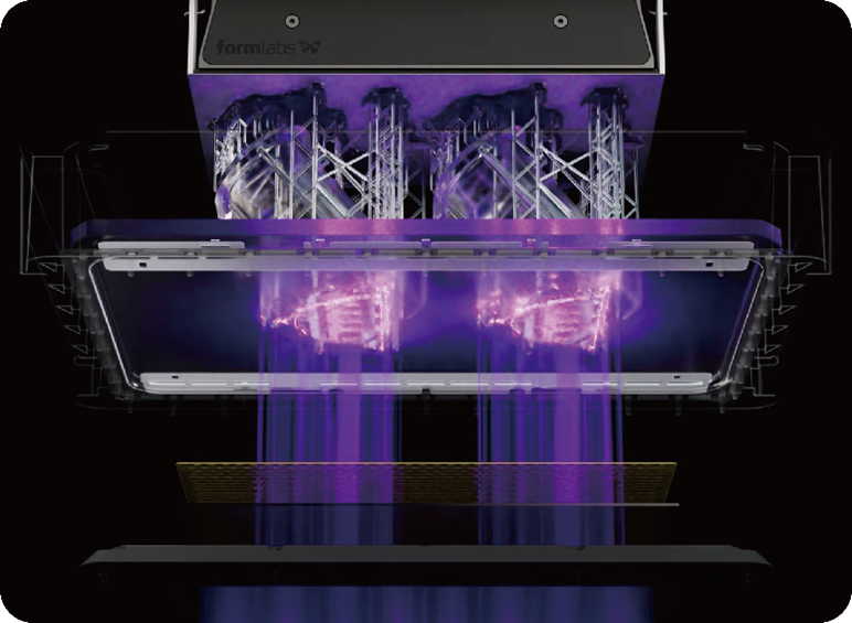 پرینتر سه بعدی Formlabs 4Bبا فناوری MSLA پیشرفته (Low Force Display™) ، برای چاپ سریع و دقیق قطعات دندانی و پزشکی طراحی شده است. این دستگاه قادر است بیش از 400 مدل دندانی را در چند ساعت چاپ کند و سطحی صاف و جزئیاتی بسیار دقیق ارائه دهد. با رابط آسان و قابل دسترس و پشتیبانی از طیف گسترده رزینهای دندانی، Formlabs 4B انتخابی ایدهآل برای لابراتوارها، کلینیکها و مراکز ارتودنسی حرفهای است.