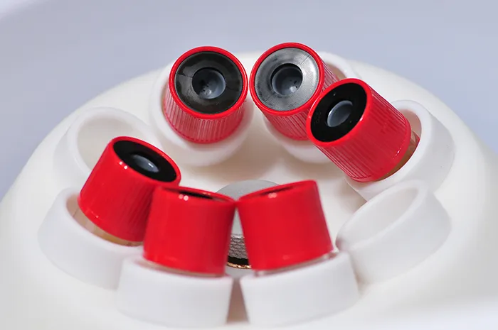 The exception rotor system with self-ventilation protects the blood sample from heat exposure. The rotor-holding compartment, the lid and the test tube holders guarantee biological safety in terms of bio-containment, in the event of test tube breakage;